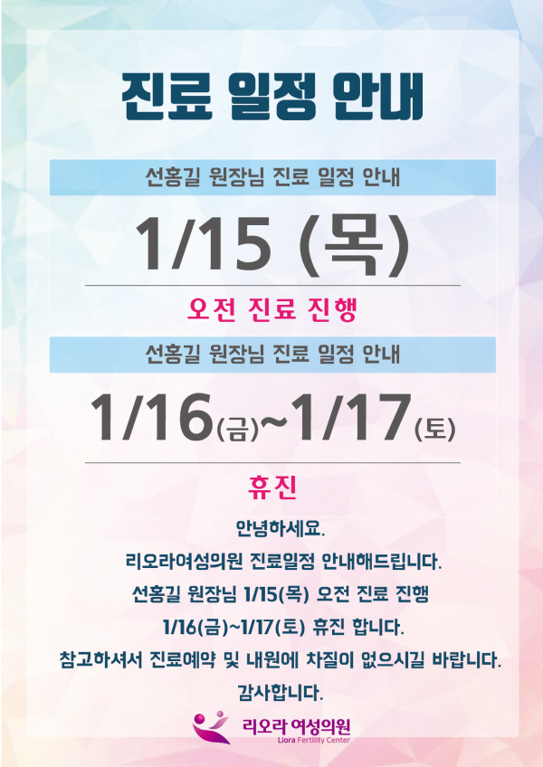 선홍길 원장님 진료 일정 변경 안내