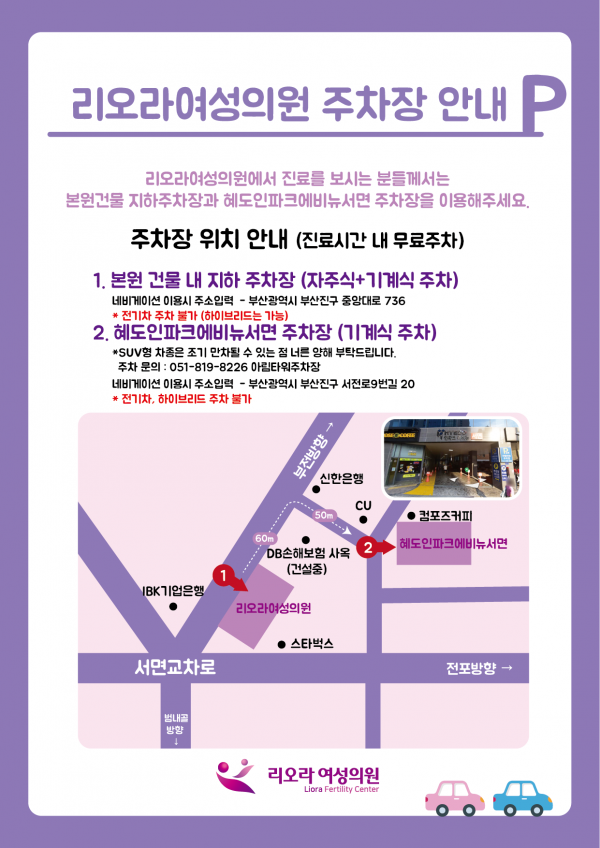 리오라여성의원 주차장 안내 *전기차 주차 불가